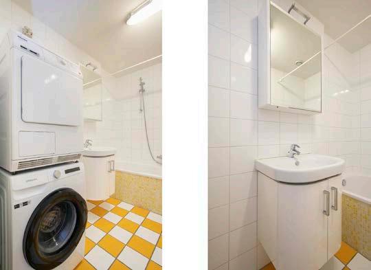 De badkamer is uitgerust met een douche in het ligbad, een wastafelmeubel en een spiegelkast. In de badkamer is tevens de aansluiting voor de wasmachine en droger aanwezig. Vanuit de hal is verder het separate toilet te bereiken, een kast met o.a. de CV-opstelling en een ruime opbergkast, waar mogelijk ook de wasmachine en droger kunnen staan.