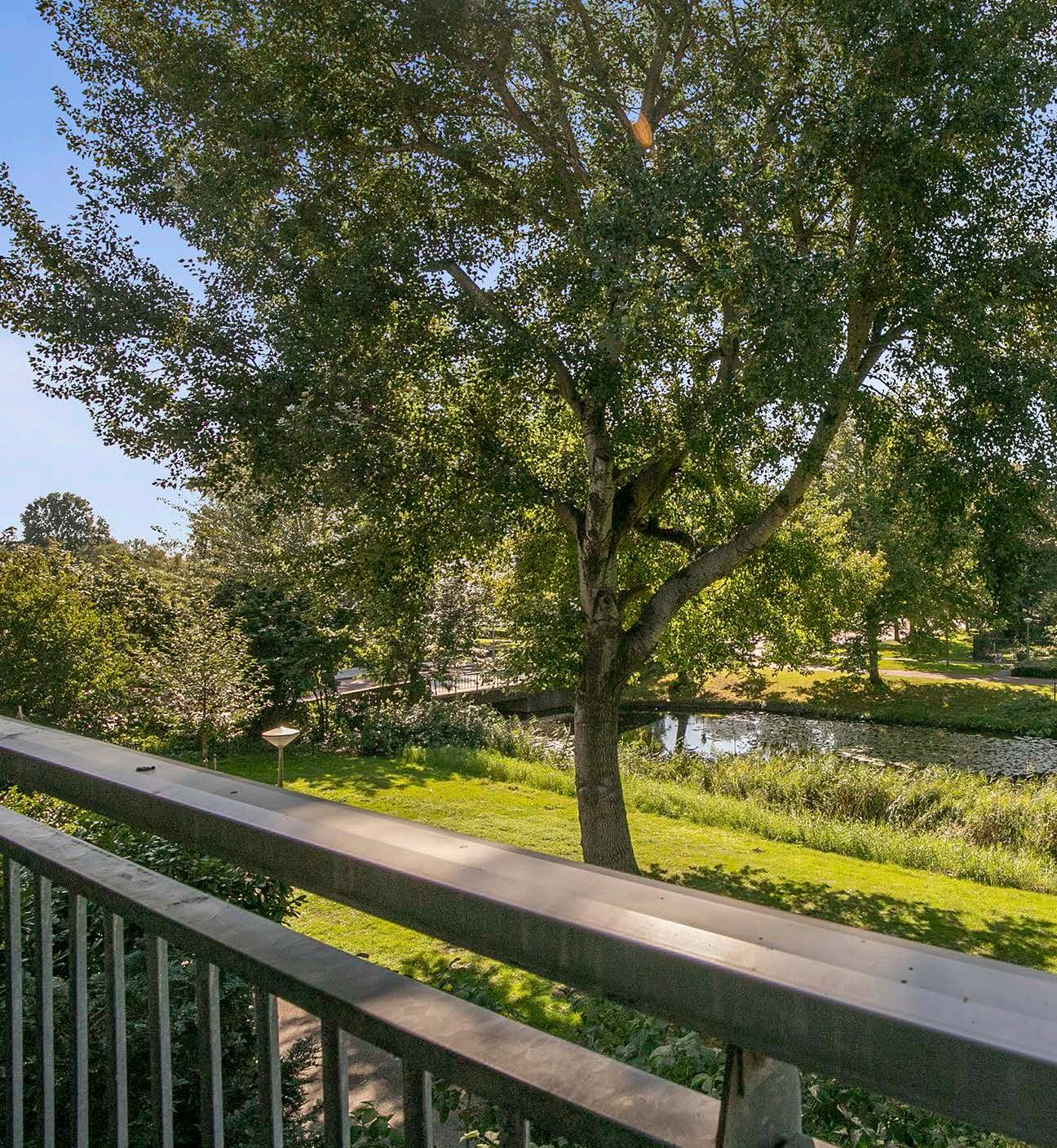 Het is prettig wonen in het appartement. Weinig geluid van de straat, het prachtige uitzicht vanuit de woonkamer waardoor je de seizoenen meemaakt.