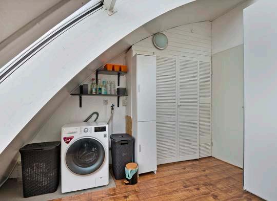 De zolderverdieping is een verrassende ruimte met een aangename hoogte. De open ruimte aan de voorzijde is gemakkelijk als werk- of slaapruimte te gebruiken. Verder heb je hier nog een (was-)kamer met witgoedaansluitingen.