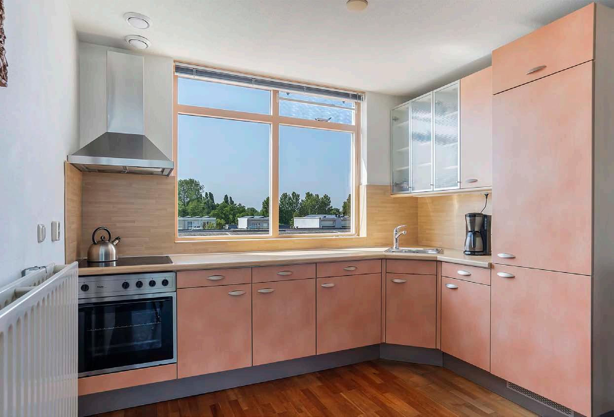 De open keuken is in een L-opstelling geplaatst waardoor je over voldoende werk- en opbergruimte beschikt. De keuken is voorzien van een keramische kookplaat, koelkast en vriezer. Mocht de keuken toch niet helemaal jouw smaak zijn? Dan heb je de mogelijkheid om hier jouw droomkeuken te (laten) plaatsen in de kleur, opstelling en met de apparatuur die jij wenst.