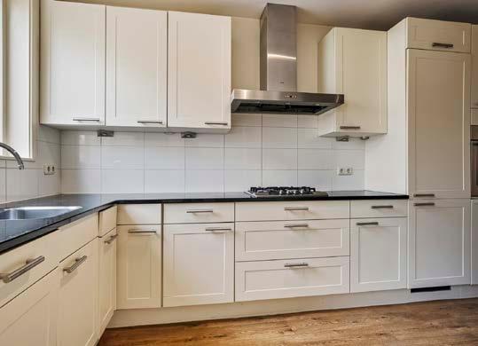 De woning beschikt over een open keuken die van alle gemakken is voorzien. De keuken is uitgerust met inbouwapparatuur, waaronder een 4-pits kookstel, vaatwasser, koel/vriescombinatie en een oven. De open opzet van de keuken zorgt voor een naadloze overgang naar de woonkamer, ideaal voor gezellig samenzijn met familie en vrienden.