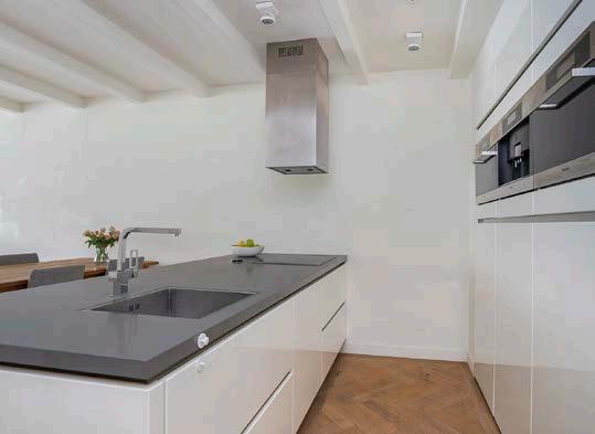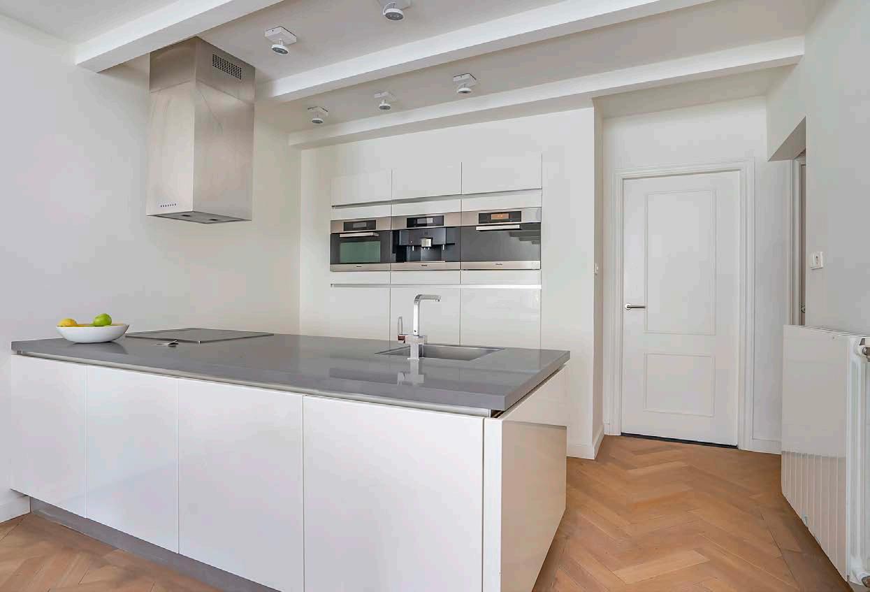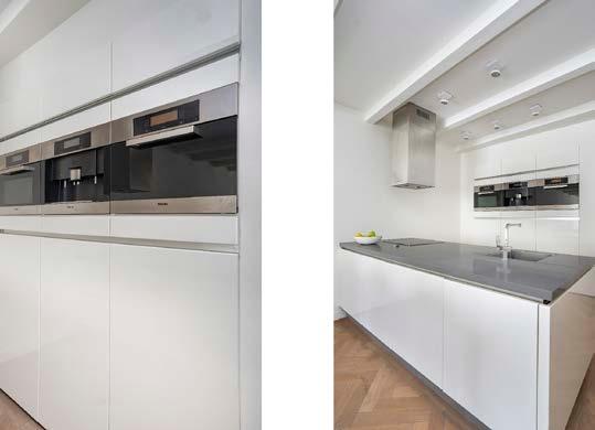 De luxe open keuken sluit naadloos aan op de stijl van het appartement. De keuken biedt veel kasten werkruimte en is uitgerust met hoogwaardige Miele apparatuur. Te noemen: een 4 zones inductiekookplaat, afzuigkap, stoomoven, heteluchtoven/ magnetron, koffiemachine, vaatwasser, koelkast en een separate vriezer.