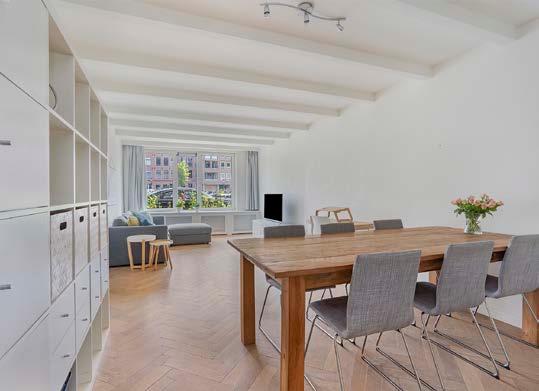 Laat je verrassen door de charme en stijl die het te bieden heeft. De woonkamer is uitgerust met grote ramen aan de voorzijde, waardoor je vanaf de bank het uitzicht op de gracht kunt bewonderen. Dankzij de houtenvloer in visgraatmotief en de rustige kleuren voelt de woning licht en luchtig aan. Het gehele woongedeelte heeft een lengte van maar liefst 10.54 meter en biedt meer dan voldoende ruimte voor een zit- en eetgedeelte.