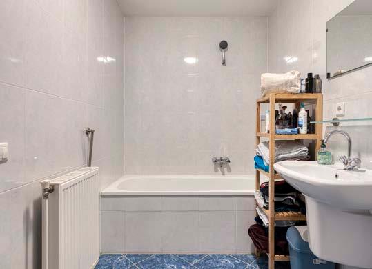 Daarnaast vind je in het appartement een nette badkamer met wastafel, douche en ligbad. Het toilet bevindt zich separaat in de hal.
