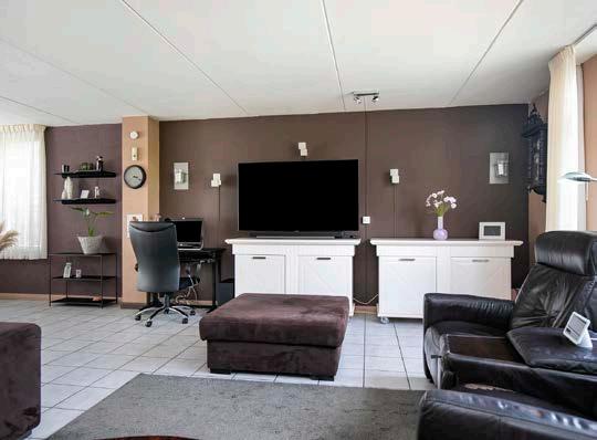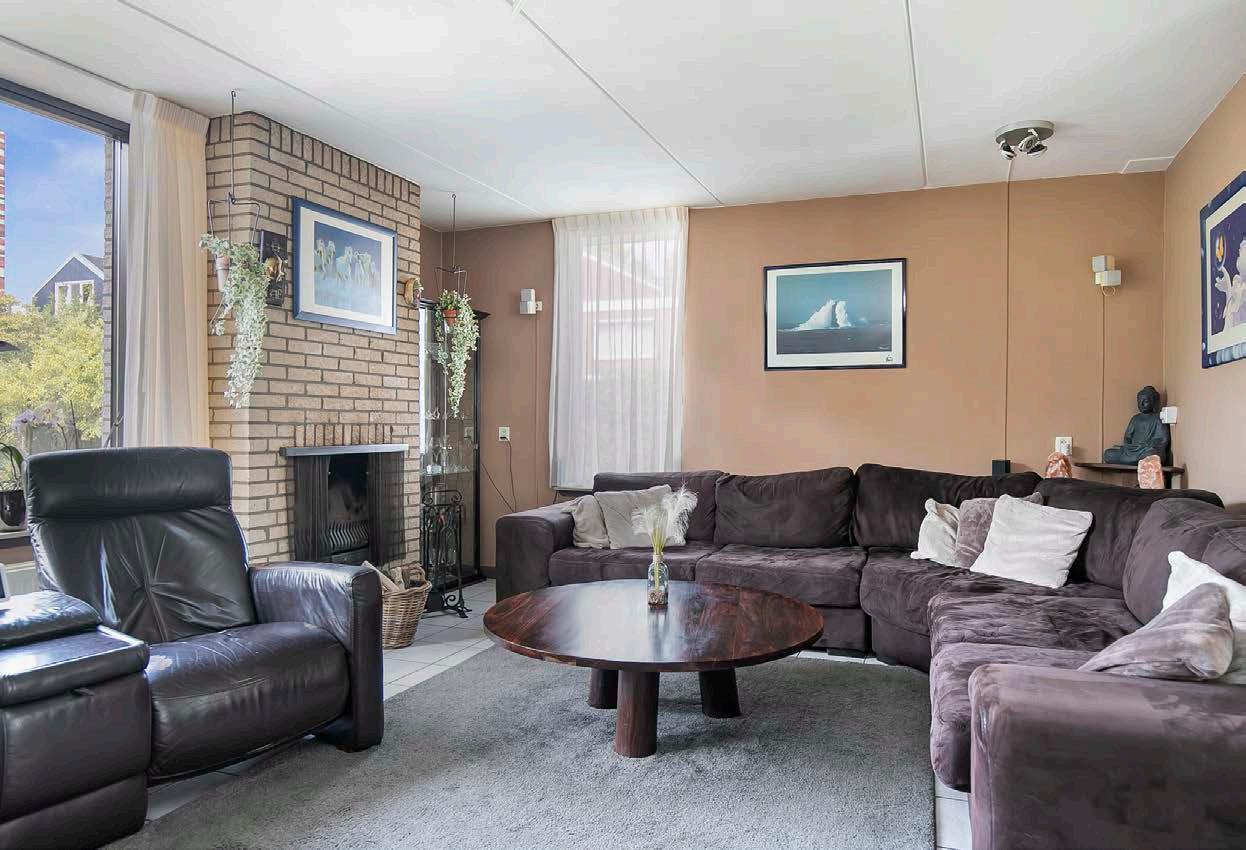 De woonkamer is een lichte en goed bemeten ruimte. De open haard is het middelpunt van de kamer en zorgt voor een warme en knusse sfeer, vooral tijdens de koudere maanden.Daarnaast laten de grote ramen het zonlicht binnenstromen, waardoor de ruimte altijd helder en uitnodigend aanvoelt.