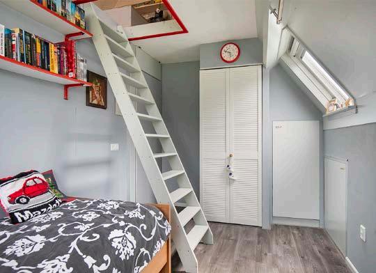 Zoals eerder benoemd bieden zowel de overloop als twee slaapkamers toegang tot de bovengelegen zolder, die talloze gebruiksmogelijkheden biedt.