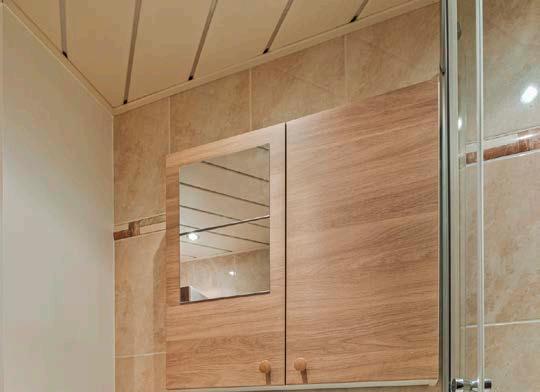 De badkamer is voorzien van een nette douchecabine en badkamermeubel, wat zorgt voor een functionele ruimte.