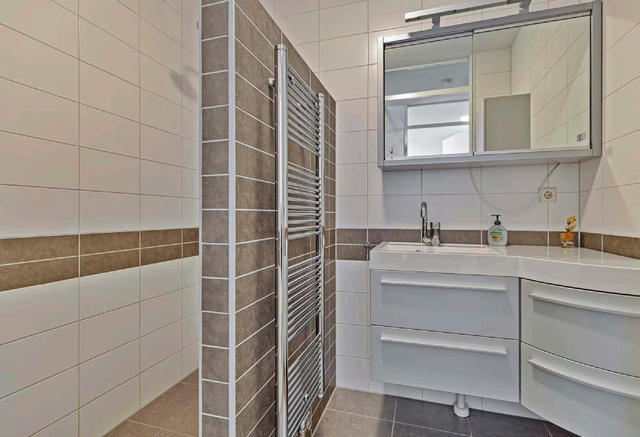 Laten we beginnen met een van de meest opvallende kenmerken van dit appartement: de luxe badkamer. Zodra je deze ruimte binnenstapt, word je getrakteerd op een ware oase van comfort en stijl. De badkamer is uitgerust met een moderne inloopdouche die is voorzien van een hoogwaardige thermostaatkraan. Dit betekent dat je elke keer weer kunt genieten van een heerlijke douche op precies de juiste temperatuur, ongeacht het weer buiten. De inloopdouche biedt niet alleen een luxe gevoel, maar is ook praktisch en ruim opgezet, zodat je voldoende bewegingsruimte hebt.