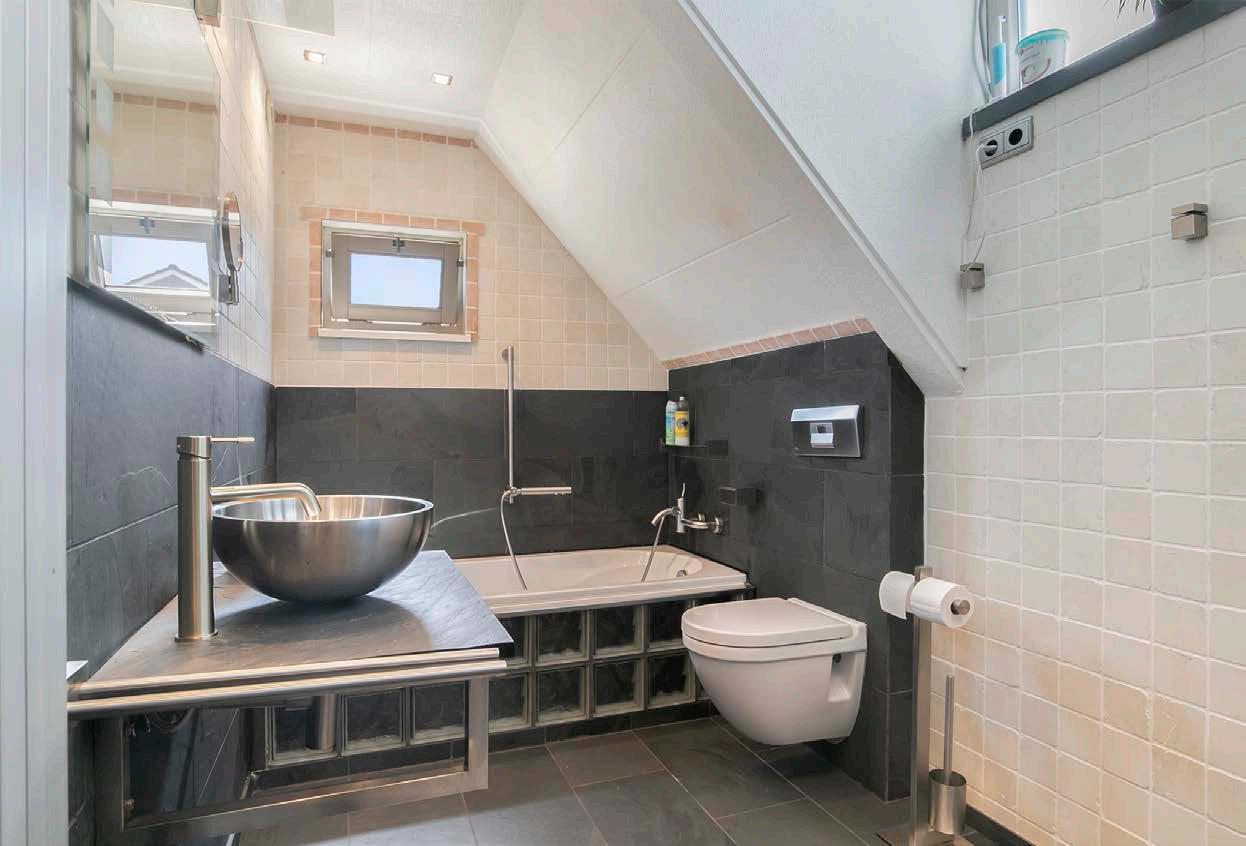 De badkamer is van goede kwaliteit en voorzien van een inloopdouche, wastafel met meubel en een ligbad, waarin je heerlijk kunt ontspannen na een lange dag.