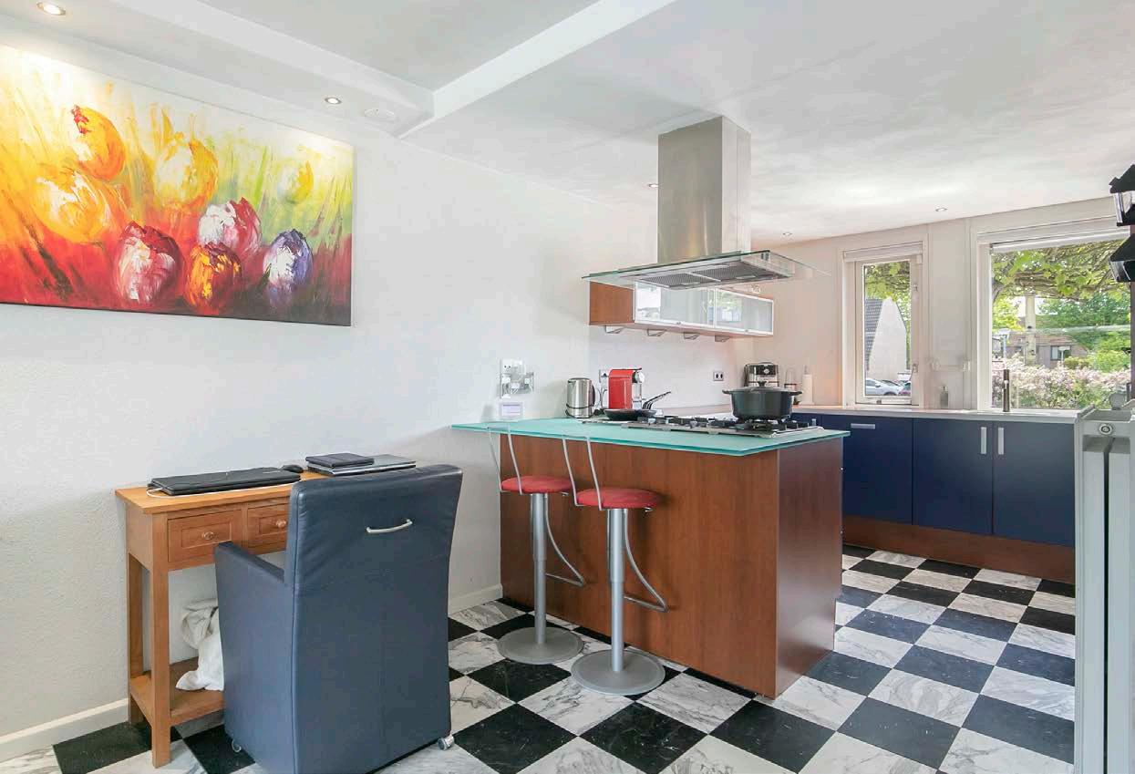 Aan de voorzijde van het huis vind je de open keuken. De keuken is geplaatst in een ruime opstelling, waarbij je voldoende kast- en werkruimte tot je beschikking hebt. Daarnaast ben je hier voorzien van diverse inbouwapparatuur. Wij noemen: een gaskookplaat, afzuigkap, Boretti oven, koffieapparaat en een vaatwasser.