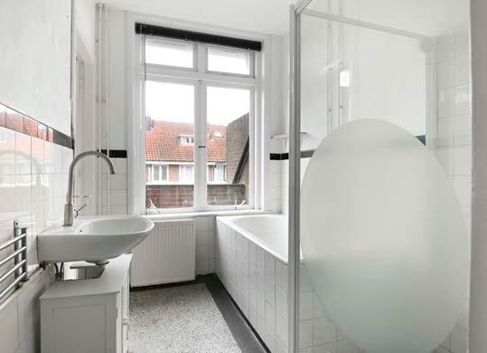 De badkamer is standaard en is voorzien van een toilet, wastafel, ligbad en douche. Er is voldoende ruimte om een moderne, gloednieuwe badkamer te realiseren.