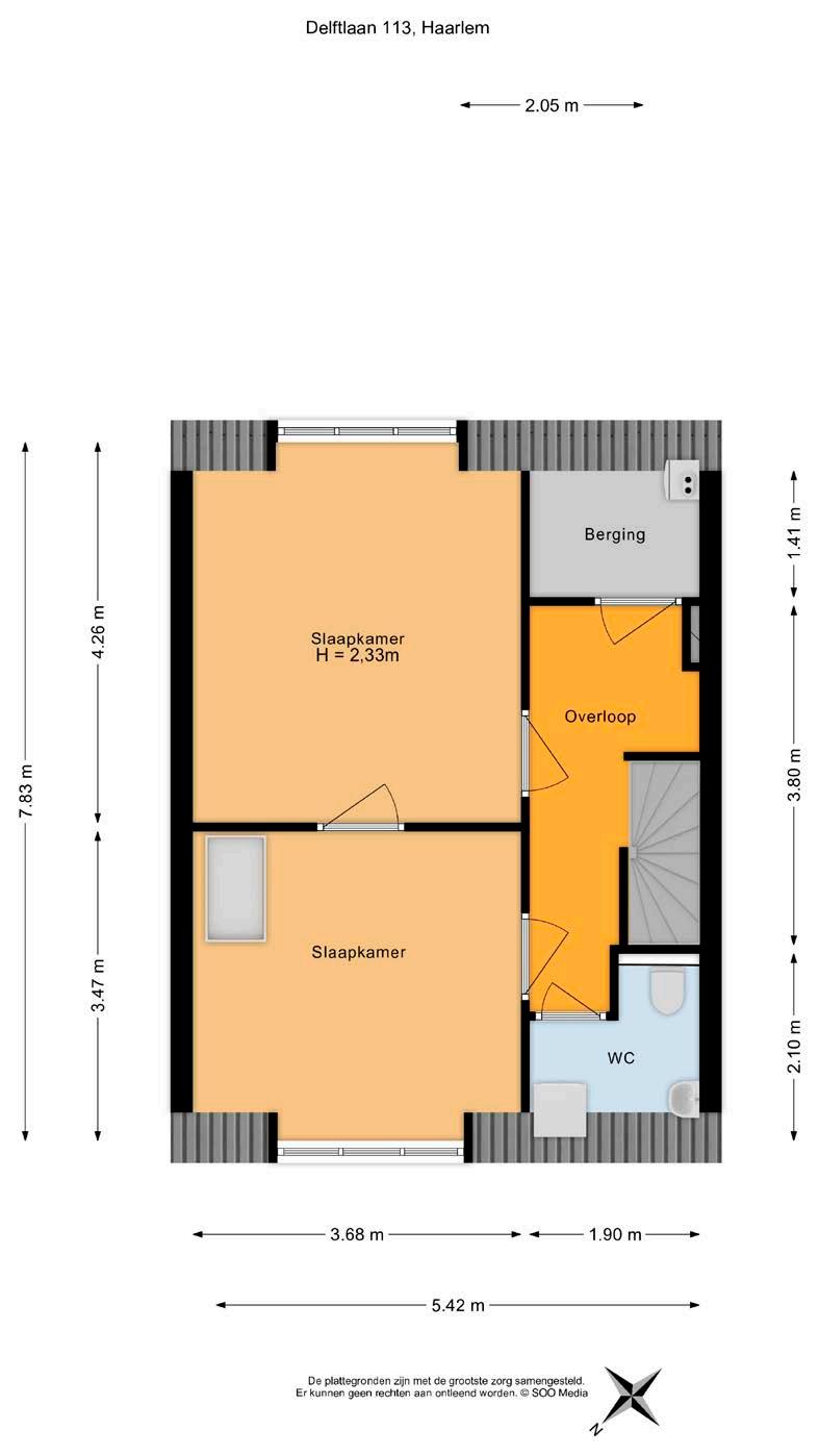 Op de 2e verdieping zijn nog eens twee slaapkamers, een toilet en een berging gesitueerd. Door de dakkapel aan zowel de voor- als achterzijde komt er aangenaam daglicht binnen.