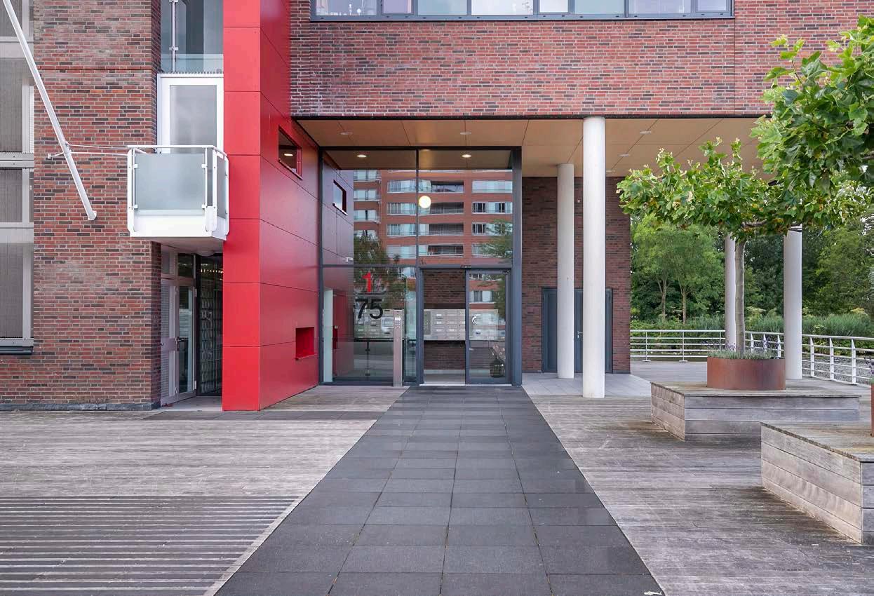 Je komt binnen in de centrale hal met de brievenbussen en het bellentableau waarna je met 1 van de 2 liften of via het trappenhuis naar het appartement gaat dat zich op de achtste verdieping bevindt.