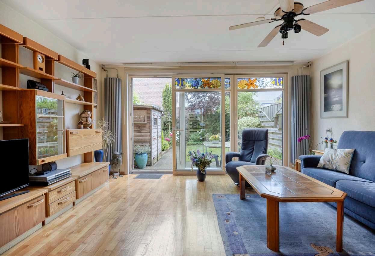 Bij binnenkomst in de woning treft u een nette hal met meterkast en garderobe. Vanuit de hal loopt u de lichte en gezellige woonkamer in, voorzien van een warme parketvloer en een grote kunststof schuifpui die toegang biedt tot de zonnige tuin. Deze ruimte leent zich perfect voor een sfeervolle zithoek én een ruime eethoek waar u heerlijk kunt dineren met familie of vrienden. In het midden van de kamer bevind zich de trapopgang en het moderne toilet met fonteintje.