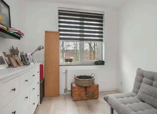 In de woonkamer zie jij direct hoe je de ruimte zult indelen – een comfortabele zithoek met zicht op de voortuin en een gezellige eethoek vlakbij de keuken. De ruimte is netjes afgewerkt met grote stenen tegels inclusief vloerverwarming en de wanden zijn voorzien van stucwerk.