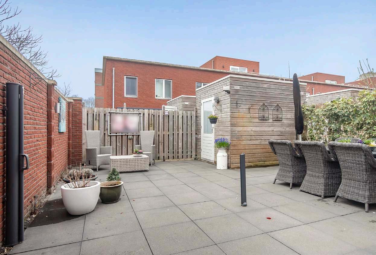 De achtertuin is verzorgd aangelegd en biedt alle ruimte voor bijvoorbeeld een loungeset. De tuin is geheel bestraat, voorzien van een buitenkraan en in de vrijstaande houten berging (inclusief elektra) heb de mogelijkheid voor het stallen van de fiets.