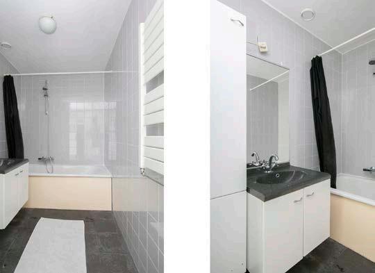 De badkamer is volledig betegeld en uitgerust met een ligbad met douche en een wastafelmeubel. In de badkamer tref je tevens de aansluiting voor het witgoed.
