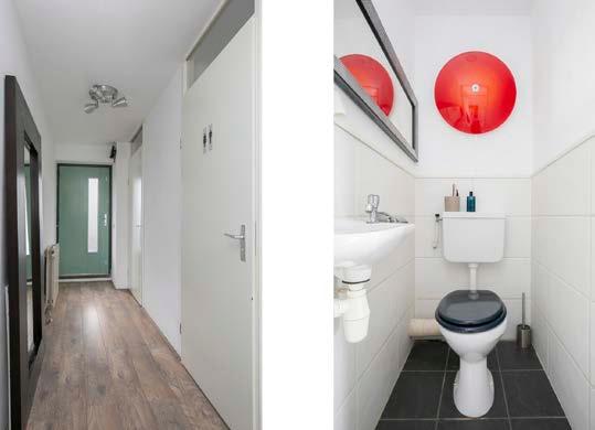 Bij binnenkomst in de hal ervaar je direct de fijne afwerking met een laminaatvloer en geverfde wanden. In de hal tref je tevens het separate toilet met fonteintje en de kast waar de CV-ketel zich bevindt.