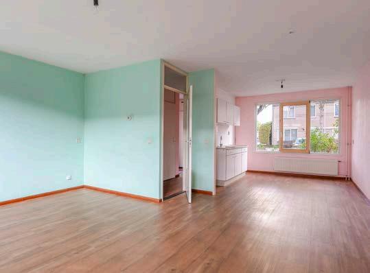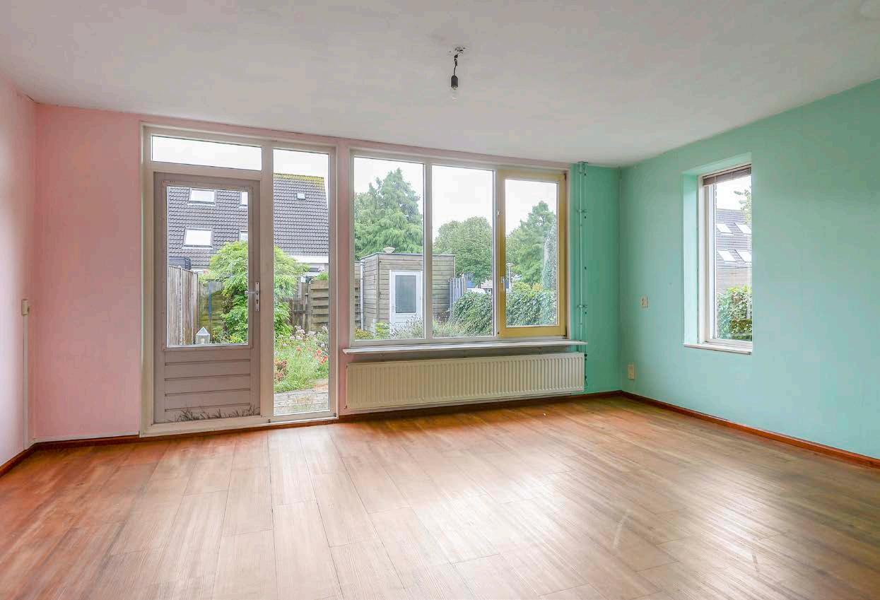 Vanuit de hal kom je in de tuingerichte woonkamer met een aangename lichtinval. Er is genoeg ruimte voor een fijne zithoek en een gezellige eethoek. Je kunt het hier nog helemaal naar eigen wens afwer ken.
