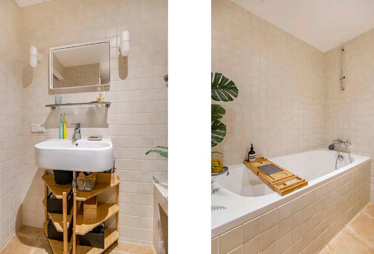 De slaapkamer is ruim genoeg voor een groot bed en biedt extra ruimte voor kledingkasten en zelfs een (thuis)werkplek. De badkamer is een verlengstuk van deze rust, met een ligbad waarin je kunt wegdromen en een douche die verfrissing biedt. De combinatie van ruimte en comfort maakt deze slaap- en badkamer tot een plek waar je je kunt terugtrekken en genieten van je privacy.