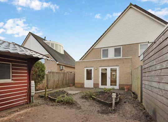 De onderhoudsvriendelijke achtertuin is te betreden via de zij-ingang naast de woning of middels de openslaande deuren van de aanbouw. De tuin is op het noordwesten gelegen en helemaal naar eigen idee op te knappen. Daarnaast is de tuin voorzien van een houten schuur voorzien van elektra en metalen dakpannen.