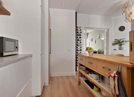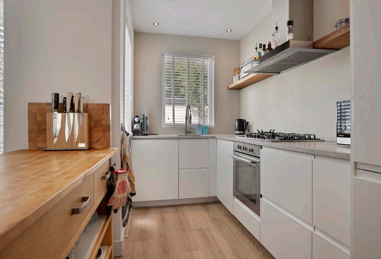 De woonkamer staat in open verbinding met de moderne keuken, die volledig is uitgerust met hoogwaardige inbouwapparatuur. Of je nu een eenvoudig ontbijt of een uitgebreid diner bereidt, deze keuken biedt alle comfort en gemak die je nodig hebt. Vanuit de keuken heb je direct toegang tot de zonnige tuin, gelegen op het zuidwesten. Hier kun je genieten van lange zomeravonden en gezellige barbecues met vrienden en familie.