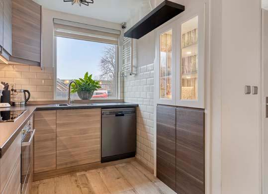 De keuken straalt eveneens gezelligheid uit en biedt genoeg werk- en opbergruimte voor al je culinaire creaties. Denk aan een grote pan dampende pasta op het fornuis of verse koffie in de ochtend. Hoe dan ook, hier krijg jij moeiteloos je innerlijke chef-kok de ruimte.