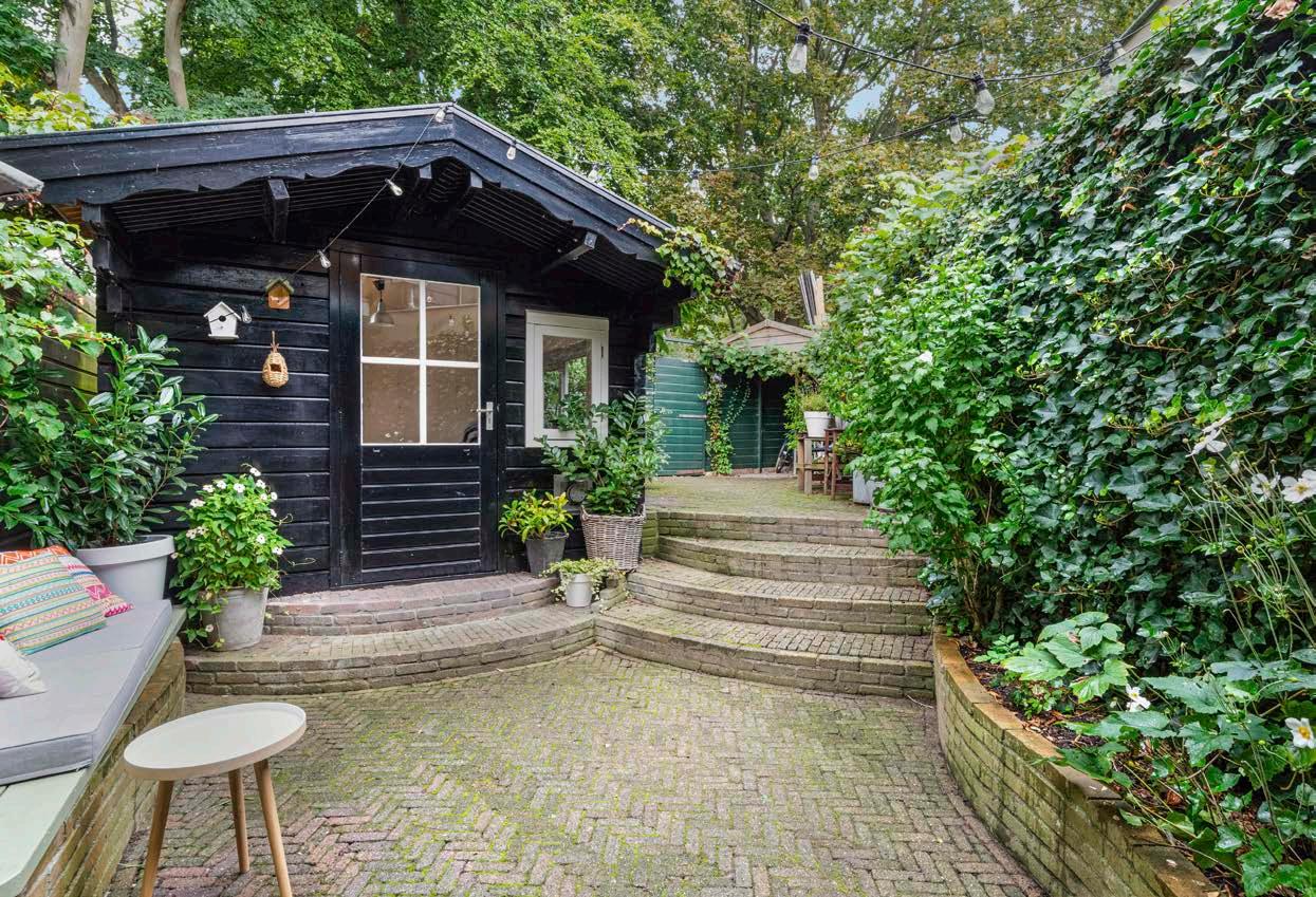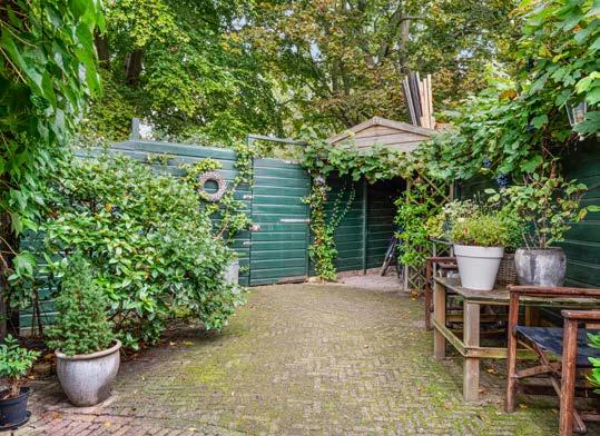 De tuin grenst aan het stadspark, ligt op het westen en is een echte diepe stadstuin met verschillende hoogtes. In de tuin staat een ruim tuinhuis die is voorzien van verwarming en elektra. Je kunt hem inrichten als gastenverblijf, thuiskantoor of als atelier. De mogelijkheden zijn eindeloos!