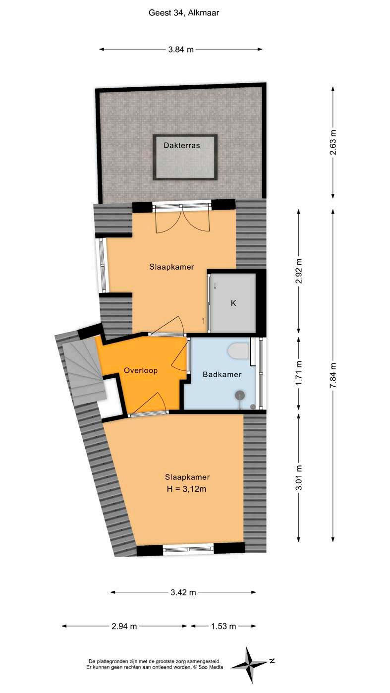 De ligging kan haast niet beter; in het centrum, maar toch rustig! Door de autoluwe situatie in een kindvriendelijke straat én door de ligging aan het stadspark is het heel rustig en groen wonen. Wonen aan de Geest 34 betekent wonen met alle gemak ken van de stad; alle winkels, horeca en de histori sche grachten van Alkmaar zijn binnen handbereik. Vanuit de woning kun je zelfs de prachtige grote kerk van Alkmaar zien! De woning heeft een goede bereikbaarheid, op enkele minuten loopafstand vind je het NS Station en ook de busverbinding is nabij. Parkeren kun je tevens in de nabijheid van de woning.