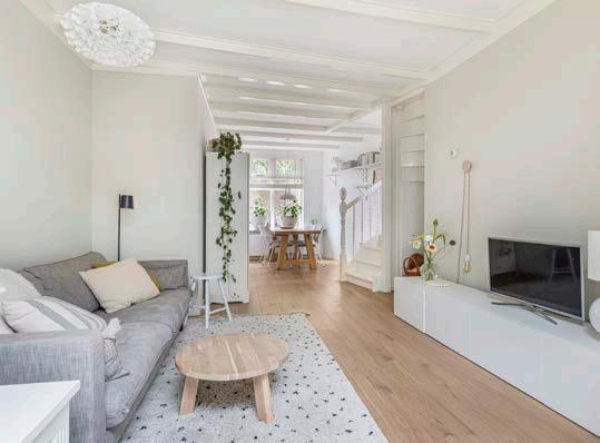 De woonkamer heeft een frisse en lichte uitstraling en dit is dé plek wat jouw veilige thuishaven gaat worden. De ruimte is netjes afgewerkt met een mas sief, houten eiken vloer en licht gestucte wanden. Het mooie balkenplafond en de glas in lood ramen geven een sfeervolle twist aan de ruimte. Plaats een gezellige zithoek en jouw woongenot is compleet!