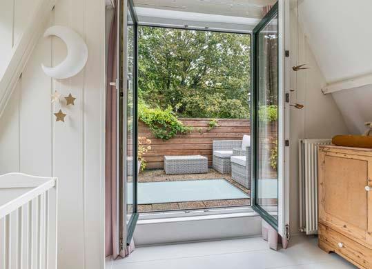 Er is door de aanwezige vliering extra opbergruimte gecreëerd op deze verdieping.