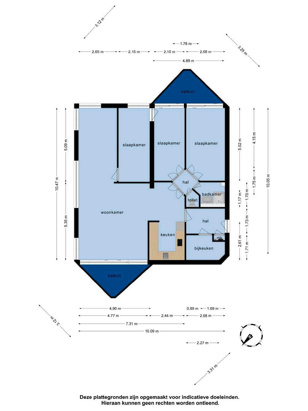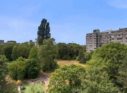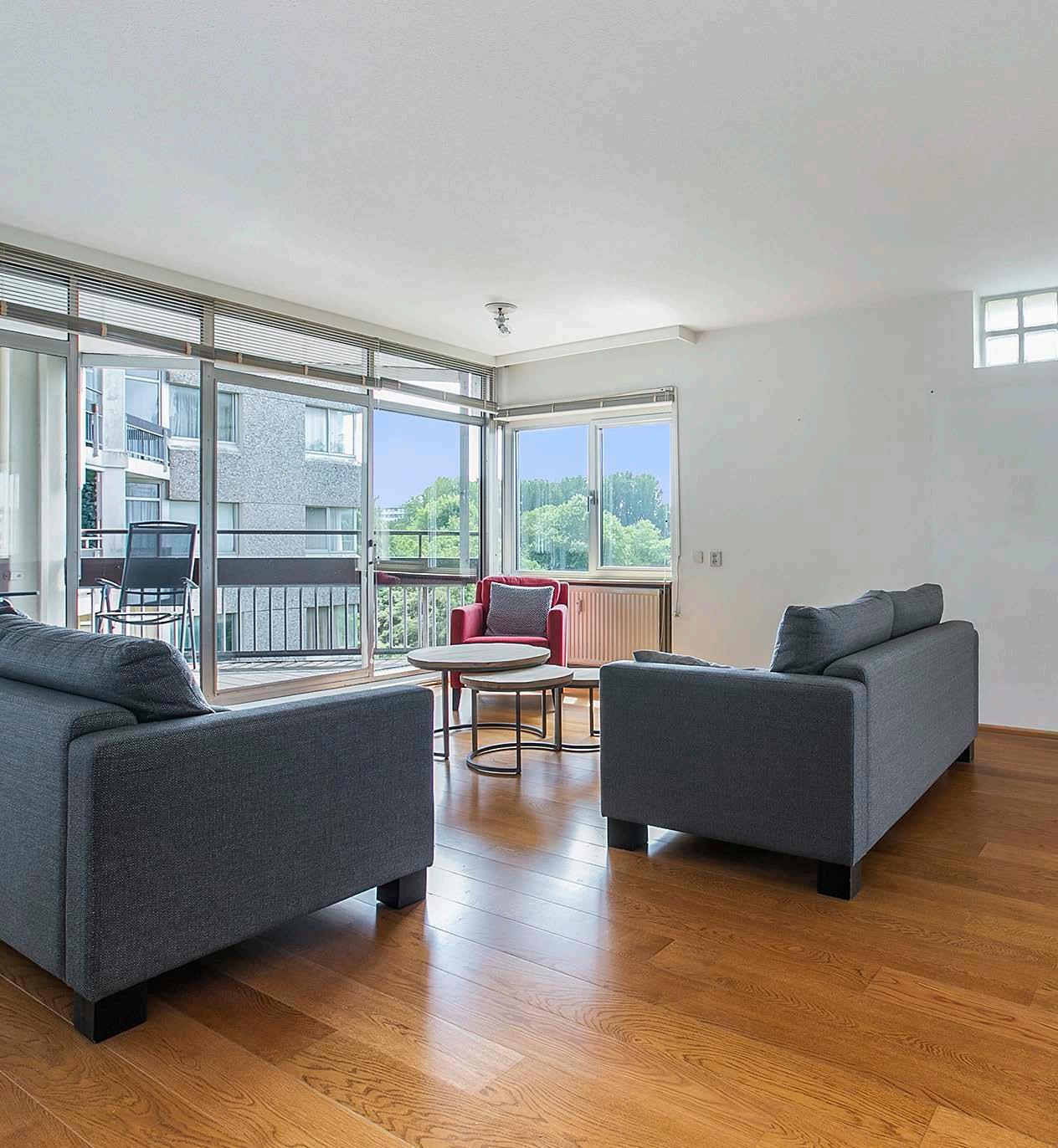 Vanuit de woonkamer heb je toegang tot de slaapkamers, de badkamer en het separate toilet. Dit appartement beschikt over drie slaapkamers met grote raampartijen, waardoor er genoeg daglichttoetreding is. Via de schuifpui in de achterste slaapkamer heb je toegang tot het tweede balkon.