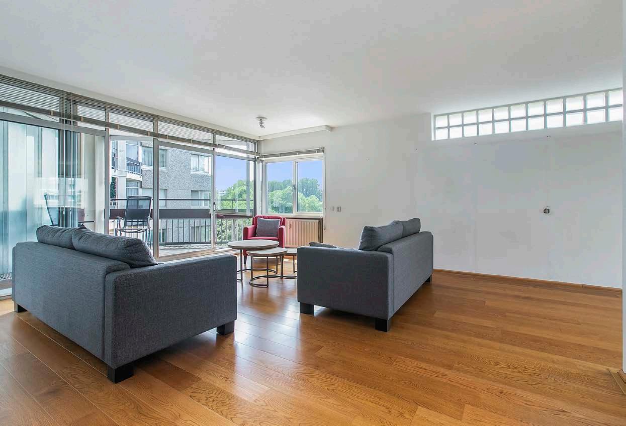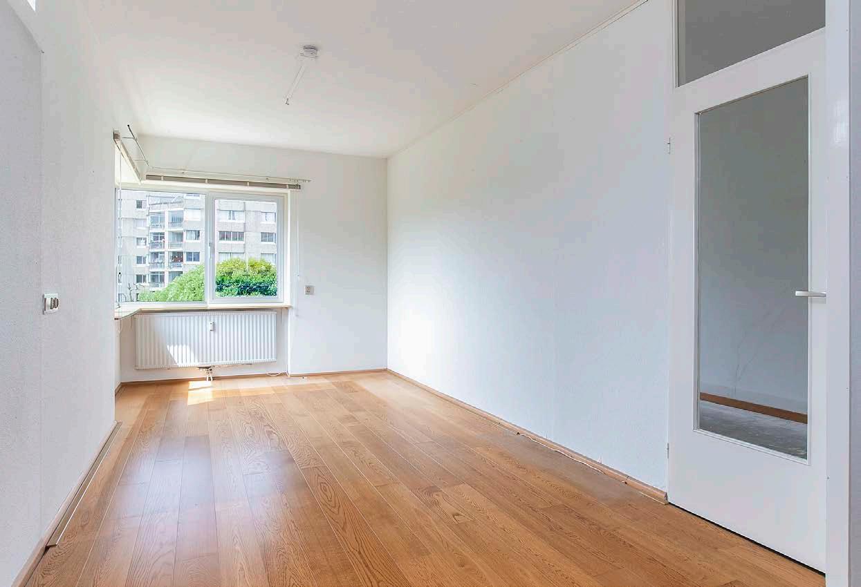 De woonkamer is verrassend ruim en licht dankzij de grote raampartij. Via de schuifpui is het eerste balkon toegankelijk. Door de praktische indeling van het appartement is de woonkamer ook ruim van opzet. Er is meer dan voldoende ruimte voor een gezellige zithoek. Het geheel is keurig afgewerkt met een houten vloer en neutrale wanden. Een nette basis om op voort te borduren. Vanuit de woonkamer kom je in de aangrenzende eetkamer. Een mooie lichte ruimte, die ook in gebruik kan worden genomen als werkkamer of vierde slaapkamer.