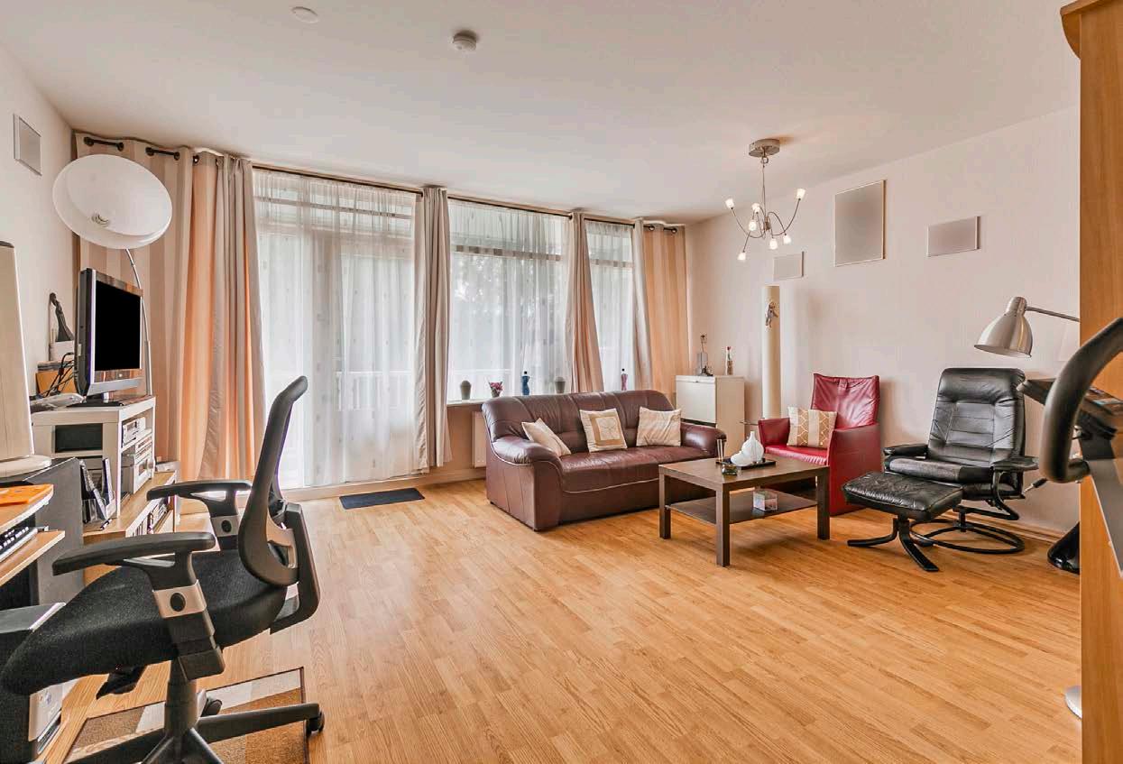 De woonkamer is een ware blikvanger met zijn grote ramen die voor een overvloed aan natuurlijk licht zorgen. Dit geeft de ruimte een open en luchtige sfeer, waardoor het de perfecte plek is om te ontspannen, te werken of te entertainen. De mooie lichtinval maakt het ook mogelijk om je interieur tot zijn recht te laten komen, met planten die floreren en kleuren die stralen. De verbinding met het balkon zorgt voor een naadloze overgang tussen binnen en buiten, waardoor je het hele jaar door kunt genieten van een ruimtelijk gevoel.