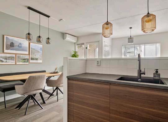 De moderne open keuken straalt een verzorgde en eigentijdse sfeer uit en is volledig uitgerust met alle gemakken. Je vindt hier diverse inbouwapparatuur, waaronder een combi-oven met magnetronfunctie en een keramische kookplaat. De keuken biedt alles wat je nodig hebt voor het bereiden van heerlijke maaltijden.