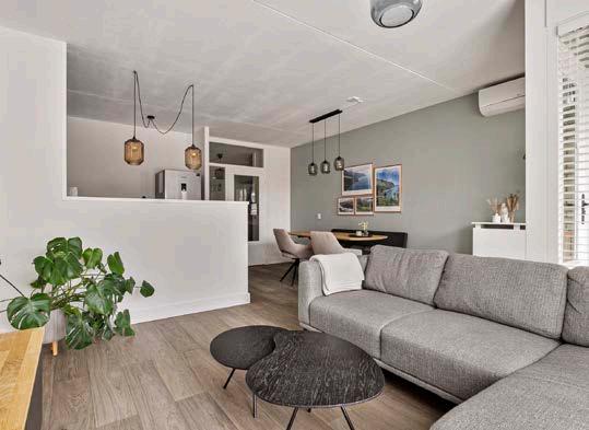 De woonkamer is aangenaam licht en biedt volop mogelijkheden voor een praktische indeling met zowel een gezellige eethoek als een comfortabele zithoek. De ruimte is keurig afgewerkt met een nette laminaatvloer. De combinatie van strakke, lichte wanden geeft de kamer een moderne uitstraling. Bovendien is de woonkamer uitgerust met airconditioning, wat zorgt voor extra comfort tijdens warme dagen.