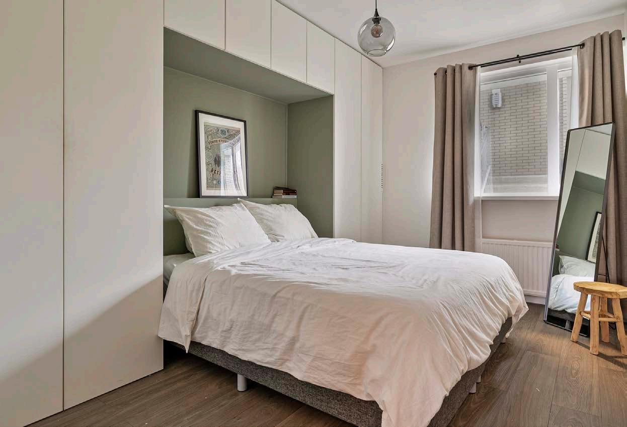 Maar terwijl het buiten bruist, geniet je binnen van de rust. De slaapkamer ligt aan de rustige achterzijde van het gebouw en is goed geïsoleerd, zodat je geen last hebt van het stadsleven buiten. Daarnaast heeft het