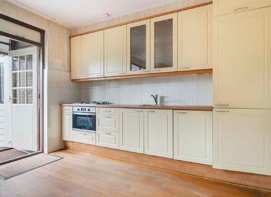 De open keuken is eenvoudig doch functioneel ingedeeld en uitgerust met een gaskookplaat, combi-oven en koel-/vriescombinatie. Plaats jij hier jouw droomkeuken met het keukenblok en de inbouwapparatuur die jij wenst? Daarnaast krijg je via de hal - grenzend aan de keuken - toegang tot de tuin.