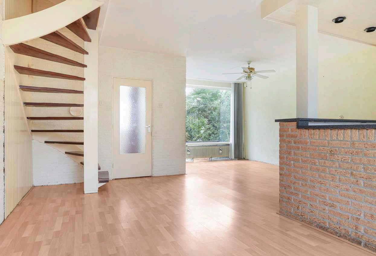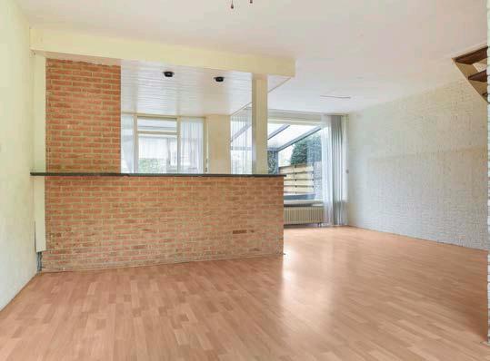De ruime woonkamer heeft veel lichtinval door de grote ramen in de voor- en achtergevel. Dankzij de fijne indeling kun je qua inrichting veel kanten op -- plaats een comfortabele zithoek en een riante eettafel waar je met goed gezelschap lang kunt tafelen. De ruimte is afgewerkt met een laminaat vloer en de buitendeur verleent toegang tot de achtertuin.