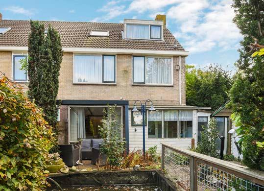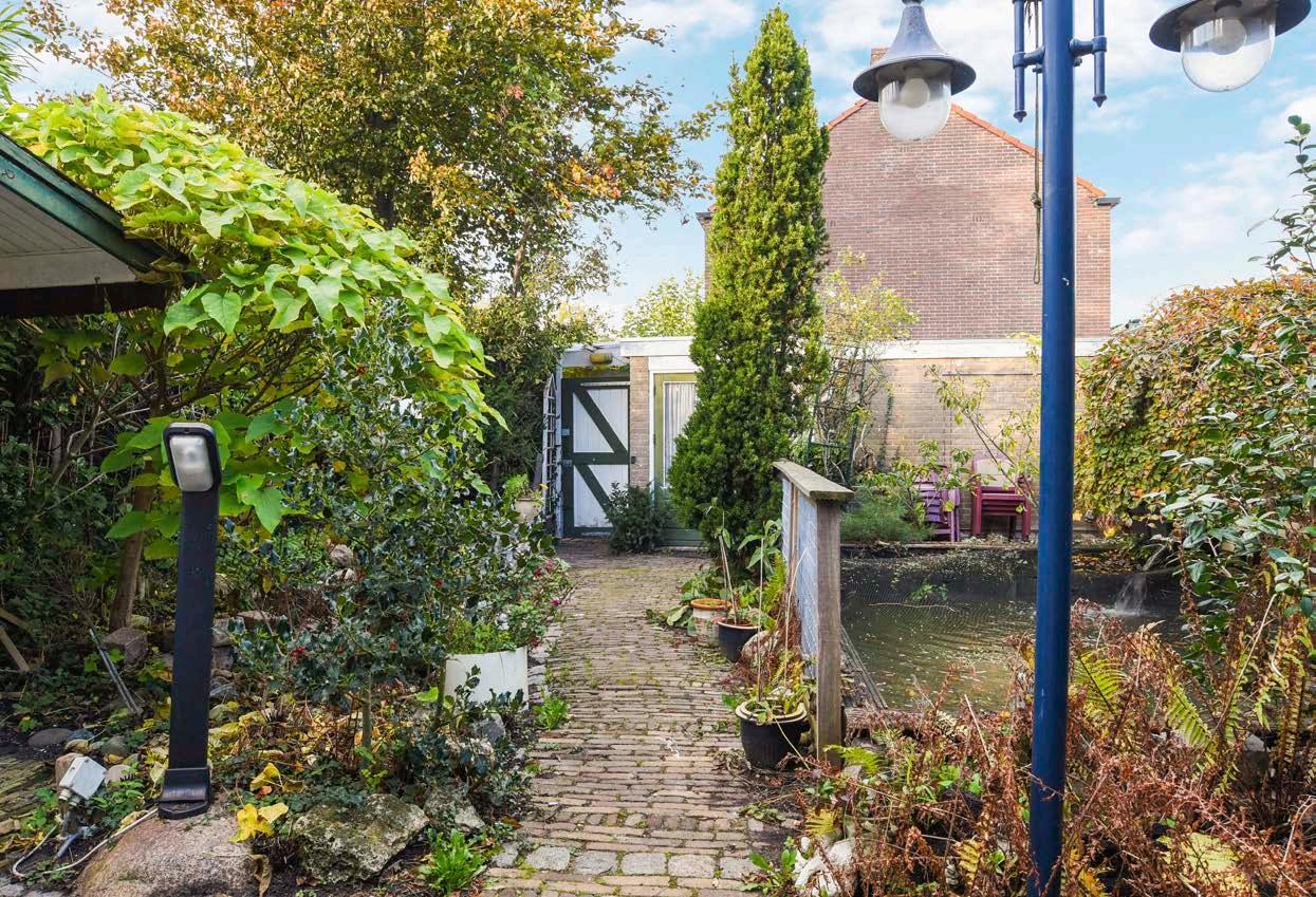 Achter de woning ligt een heerlijke tuin met over kapping op het noorden. De tuin is verzorgd aan gelegd met bestrating, vaste beplanting, een vijver en een eigen achterom. Groot pluspunt is de ruime garage met garagedeuren naar de straatzijde. Zodoende is er een mogelijkheid om de auto of motorvoertuigen veilig binnen te zetten.