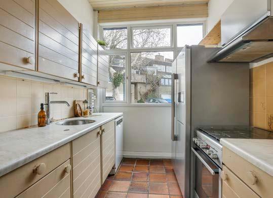 Vanuit de woonkamer loopt u zo de half open keuken in. Het betreft een eenvoudig keukenblok dat is geplaatst in een dubbele opstelling en is voorzien van voldoende werk- en opbergruimte. Wat betreft de losse apparatuur beschikt u over een 4 pits gasfornuis met oven, een afzuigkap en een vaatwasser.