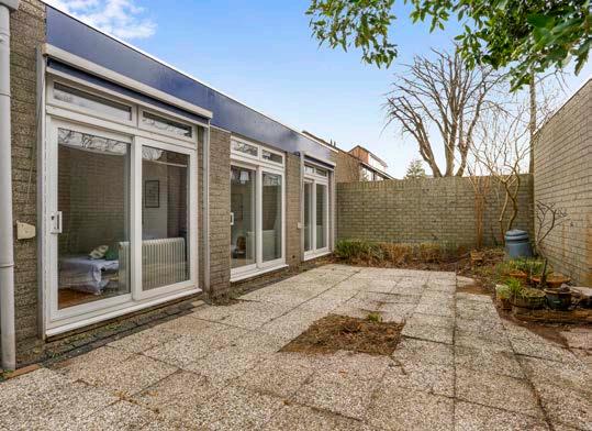 De besloten patio / tuin biedt veel privacy en is bereikbaar via een achterom en geeft tevens toegang tot de garage. Omdat de bebouwing maar 1 verdieping telt is er weinig schaduw van het huis en kunt u de gehele dag genieten van de zon.