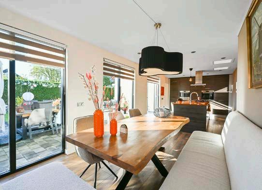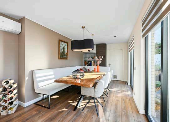 De benedenverdieping heeft een speelse indeling waarbij het creeren van meerdere gezellige plekken mogelijk is. Een van de fijnste plekken in de woning is de ruime moderne keuken waar je gezellig kunt zitten met vrienden en familie.