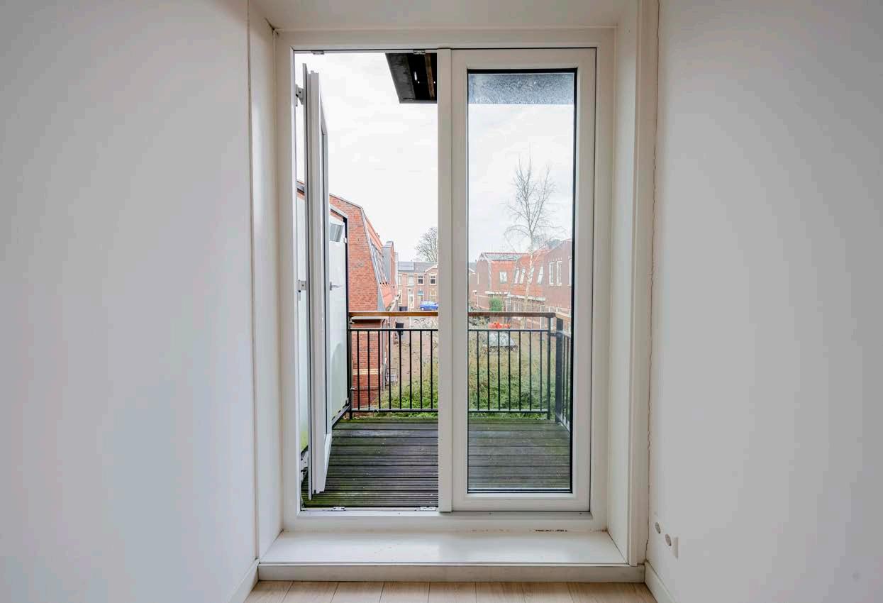 De slaapkamer biedt toegang tot het fijne balkon waar je kunt ontspannen met een kop koffie of een goed boek.