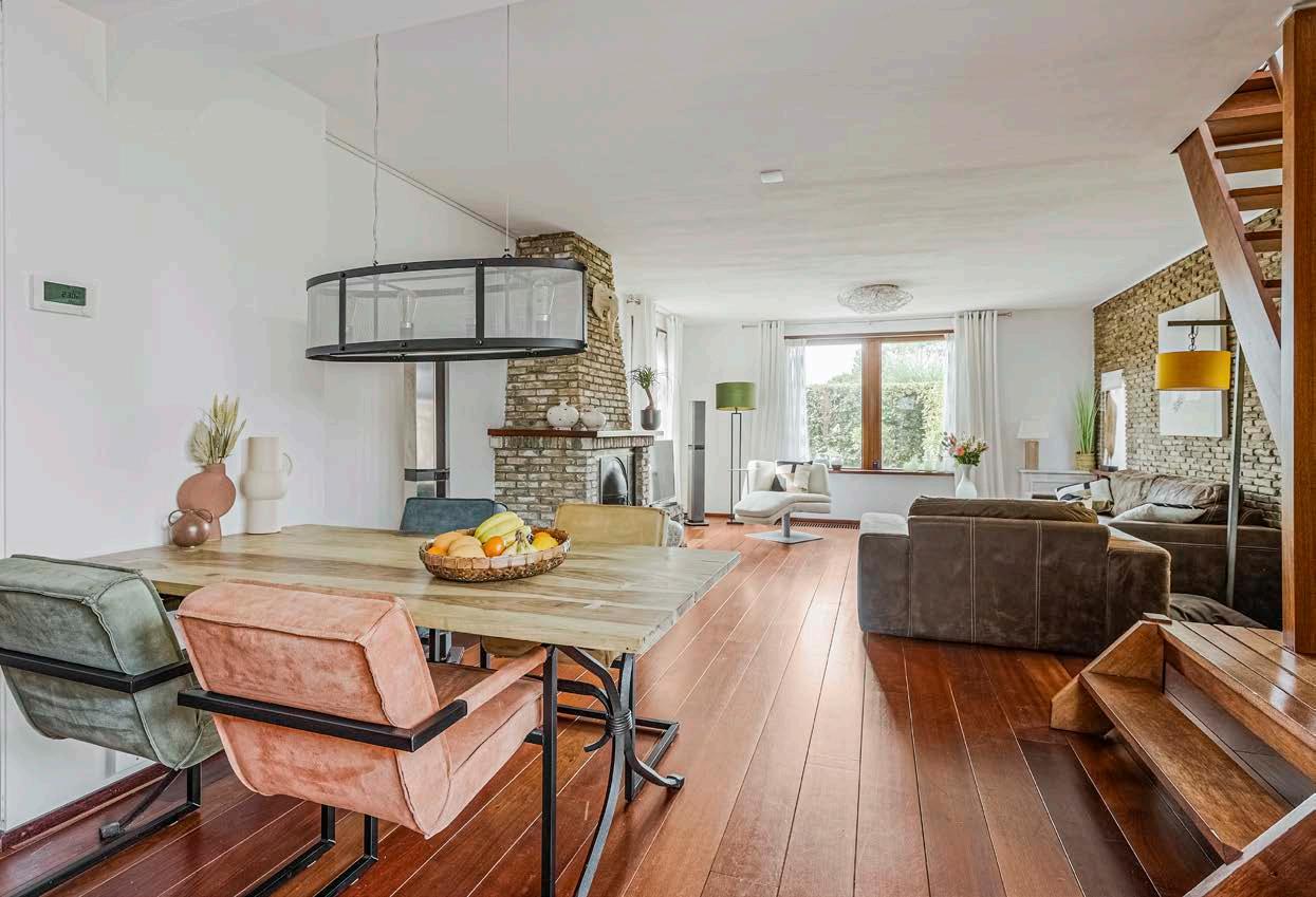 De grote woonkamer aan de voorzijde is een fijne, lichte ruimte welke door meerdere ramen uitzicht heeft over de voortuin. Er ligt een fraaie hardhouten vloer op de grond, die ook doorloopt tot en met de eerste verdieping. De wanden zijn netjes afgewerkt. Eyecatcher in de woonkamer is de mooie open haard. Plaats rondom de open haard een gezellige zithoek en geniet hier op winteravonden van het Dehaardvuur.opentrap