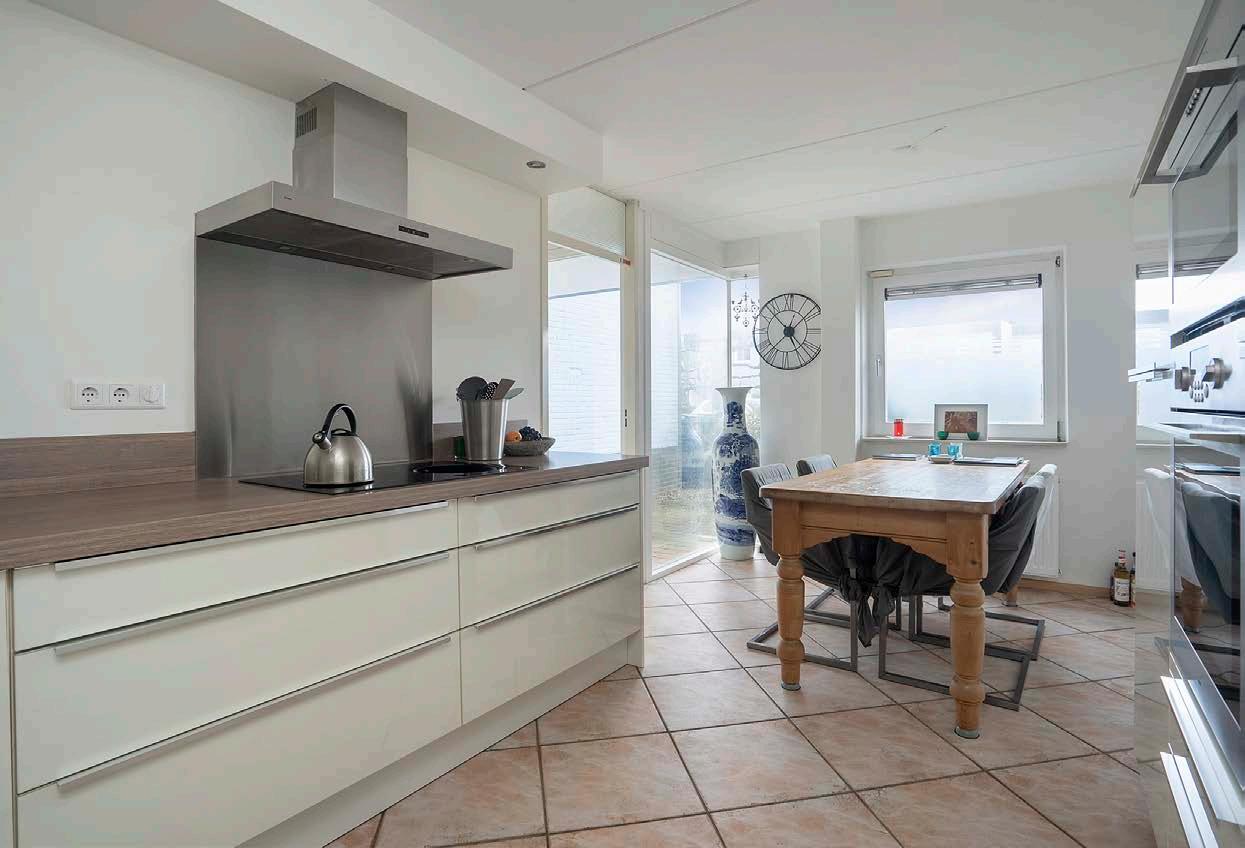 De keuken is het kloppend hart van het huis, waar functionaliteit en stijl samenkomen. Gelegen aan de voorzijde van de woning, is deze moderne woonkeuken uitgerust met hedendaagse inbouwapparatuur die elke maaltijd tot een plezier maakt. De ruimte is groot genoeg voor een eettafel, waardoor het een centrale plek in huis wordt voor zowel het bereiden van maaltijden als het genieten ervan.