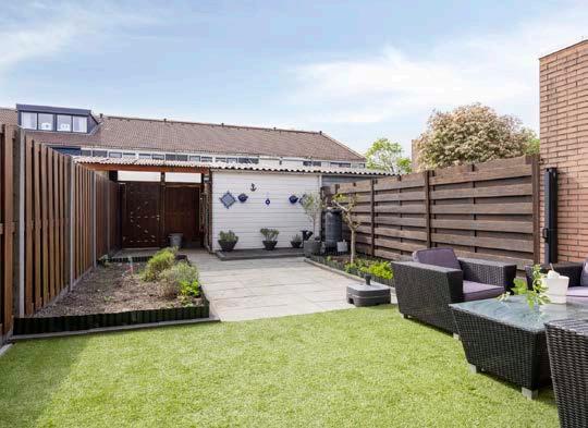 Geniet van de zon in je onderhoudsvriendelijke achtertuin op het zuidwesten. Dankzij het elektrische zonnescherm kun je ook op warme dagen beschut buiten zitten. Met een waterkraantje voor de tuinliefhebber, een ruime externe berging voor fietsen en gereedschap én een handige achterommogelijkheid, heeft deze tuin echt alles wat je nodig hebt om het buitenleven te omarmen.