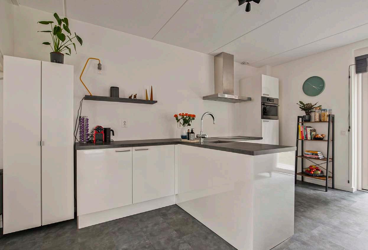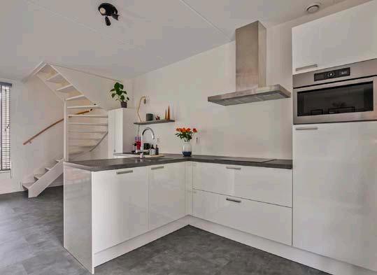 De woonkamer is een open, lichte ruimte waar je direct wordt getrokken naar de fraaie open keuken. Met inbouwapparatuur die jouw kookkunsten naar een hoger niveau tillen, wordt elke maaltijd hier een feest.