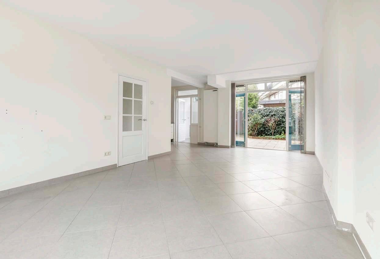Deze royale eengezinswoning gelegen in de Amsterdamse buurt heeft een lichte woonkamer met dubbele deur naar de achtertuin.