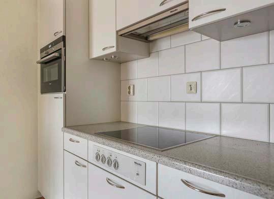 Zodra u de zeer grote woonkamer binnenkomt wordt u aangenaam verrast door de hoeveelheid licht en ruimte, dit komt mede door de grote raampartijen. U kunt hier de ruimte op verschillende manieren indelen. Er is meer dan voldoende ruimte om een comfortabele zithoek voor de tv te plaatsen waar u kunt genieten van het prachtige uitzicht. De afwerking bestaat uit spachtelputz op de wanden en het hele appartement is voorzien van een nette en goede kwaliteit laminaat vloer.